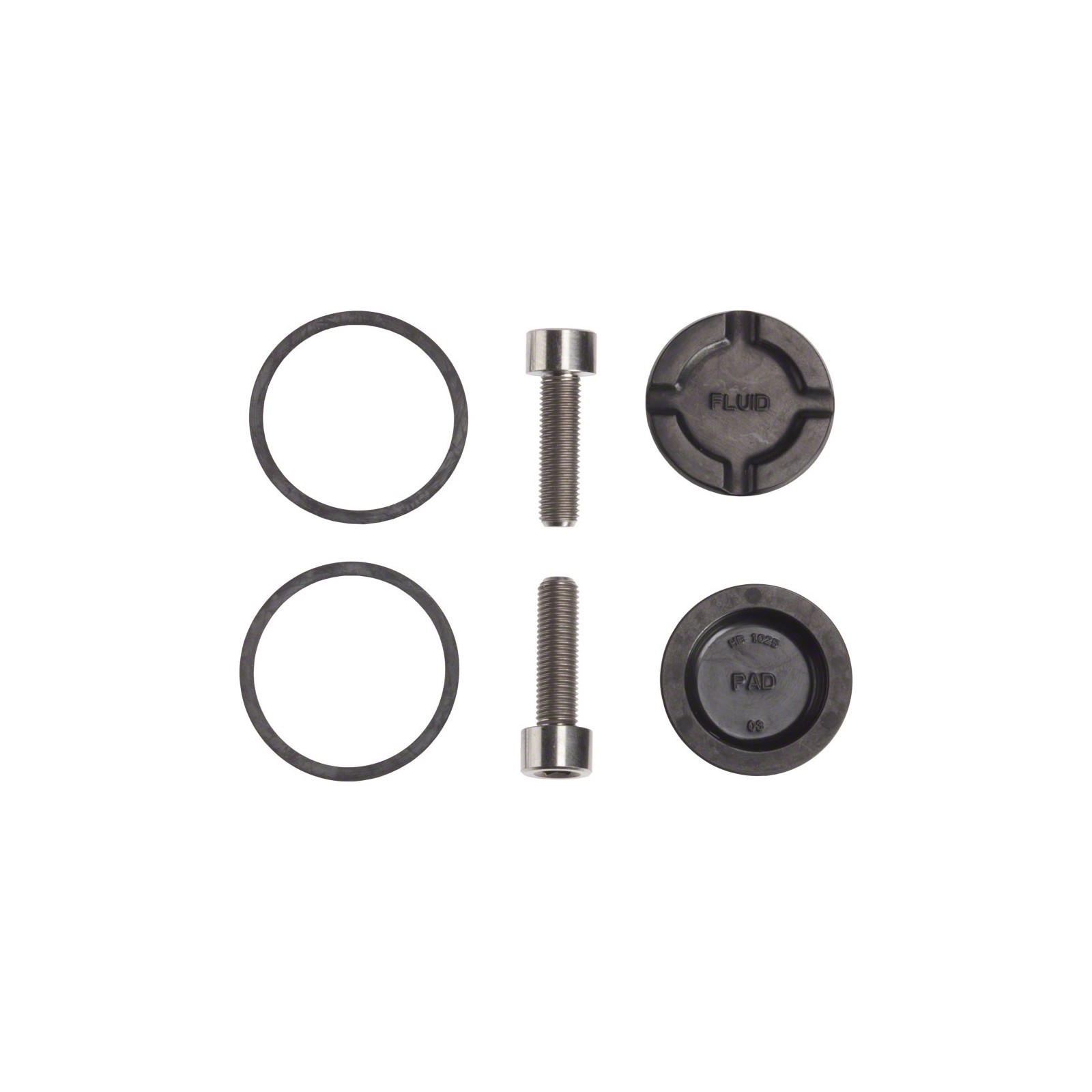 Le kit de reconditionnement d'étrier Hayes Prime Pro contient deux pistons d'étrier de frein Hayes Prime Expert / Comp avec ses joints, deux vis de pontet d'étrier en titaine ainsi que le joint de transfert d'étrier Hayes qui asure l'étanchéité entre les deux parties des étriers Hayes Prime.